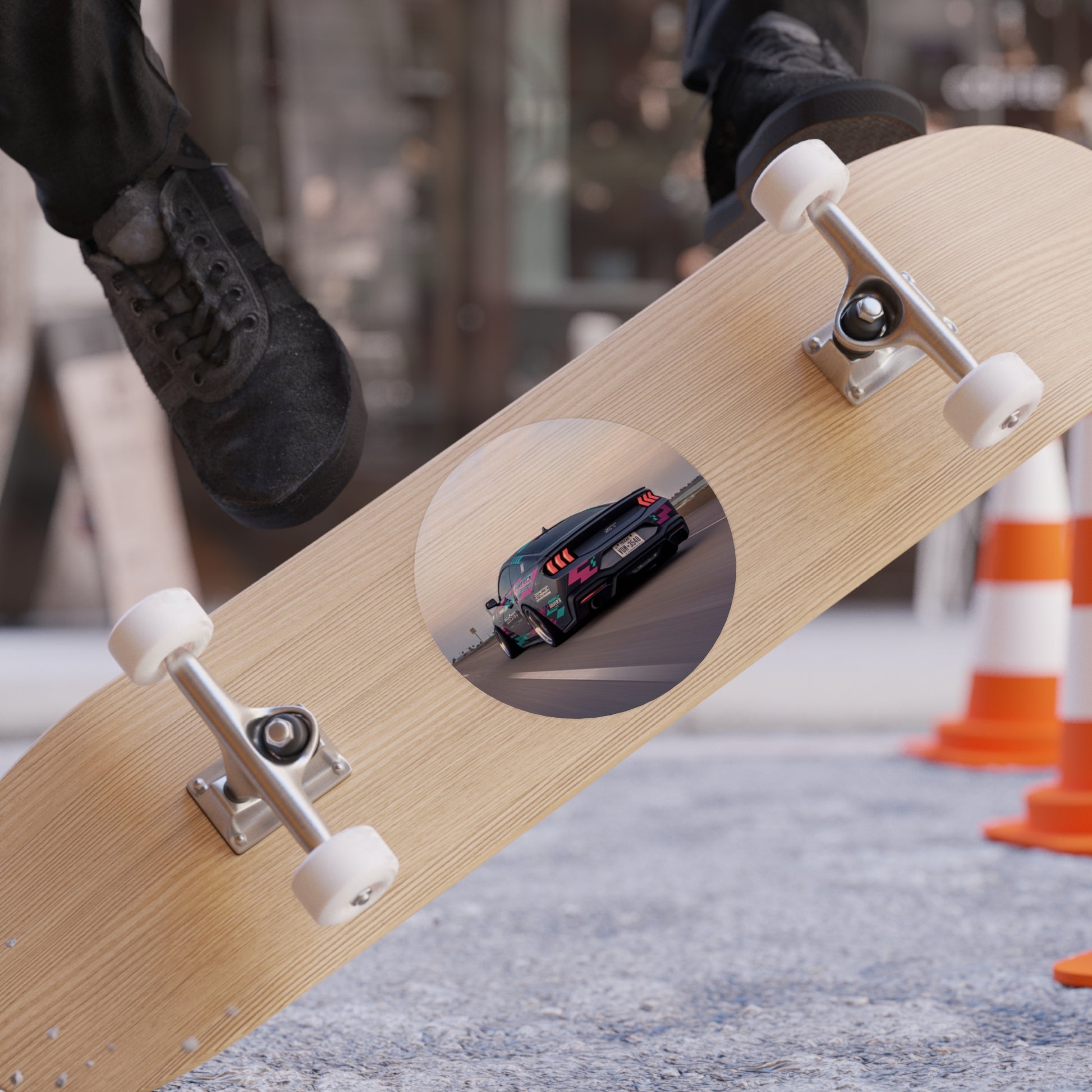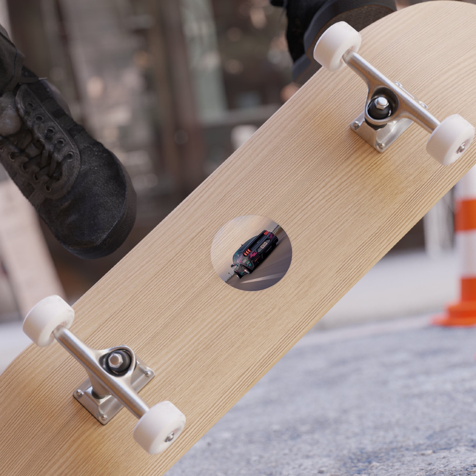 A small, transparent round sticker that channels open-road energy and automotive passion. The printed design captures a lowered muscle car at sunset — blurred motion, warm sky — and the clear vinyl lets the vehicle or gear it’s stuck to become part of the image. Stick it on a bumper, toolbox, helmet, or laptop to add a subtle, weather-ready nod to car meet culture. The matte, UV-protective laminate keeps colors vivid while diffusing glare so the image reads cleanly on both metal and painted surfaces. Water-resistant and tough, this sticker ages with the ride rather than fading away.
