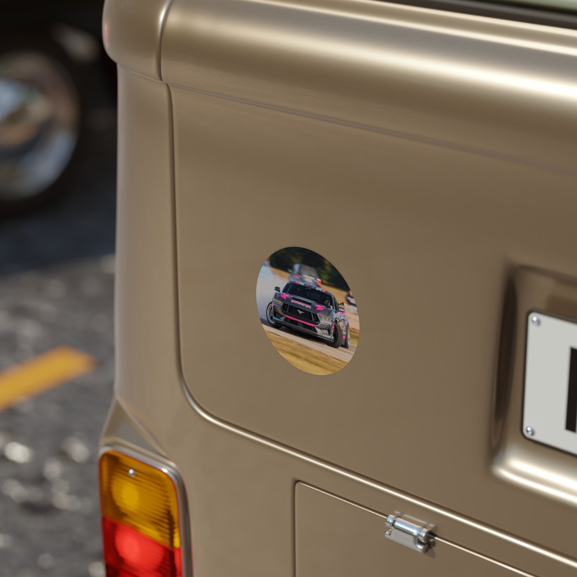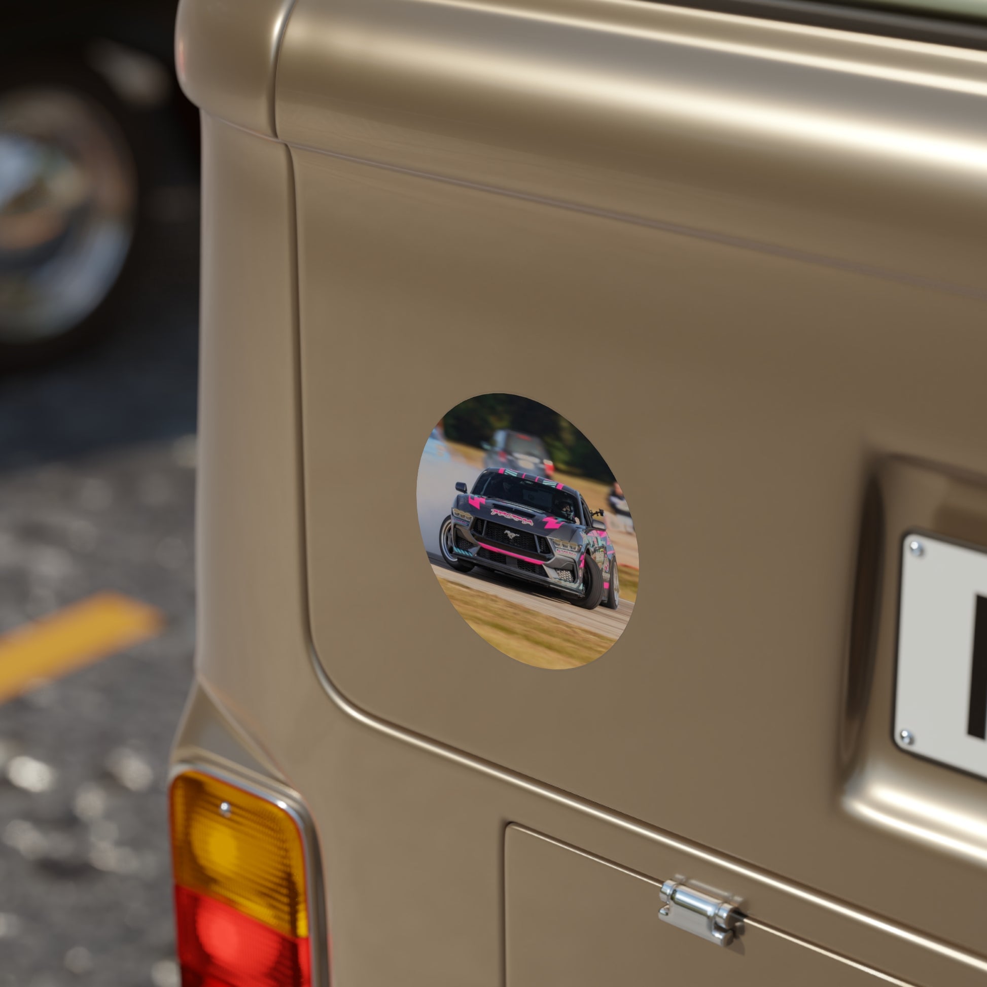 Round Transparent Outdoor Sticker — Pink Drift Mustang Car Design